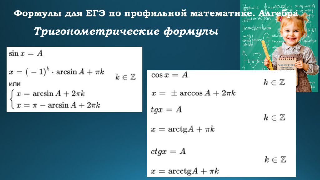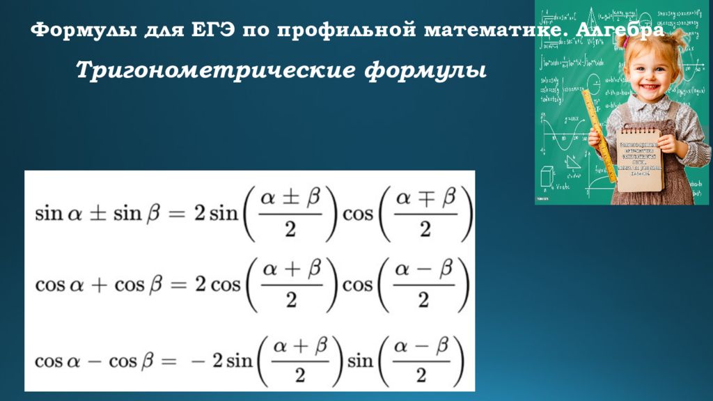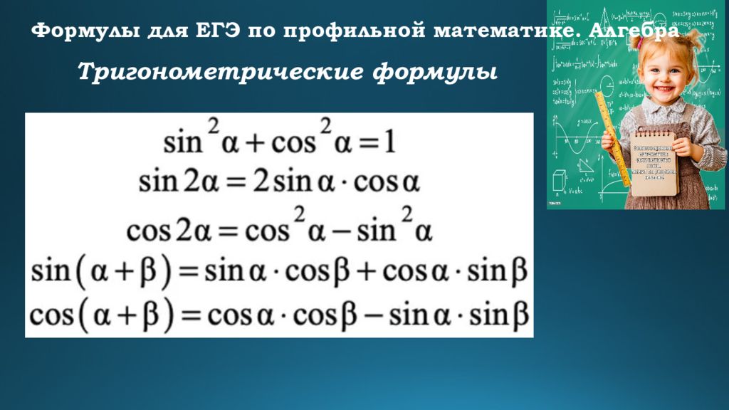 Формулы для ЕГЭ по профильной математике. Алгебра Тригонометрические формулы