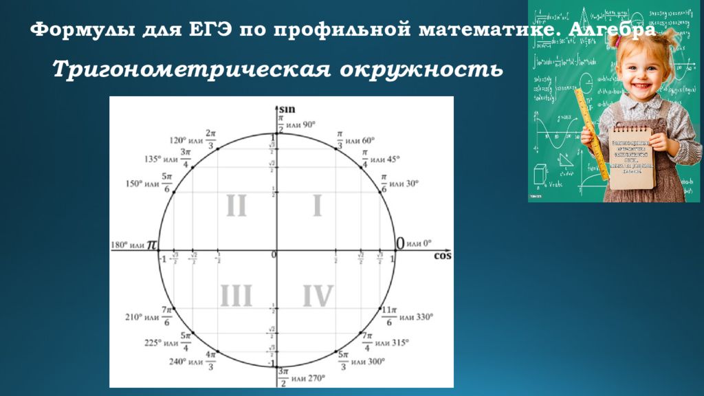 Формулы для ЕГЭ по профильной математике. Алгебра Тригонометрическая окружность
