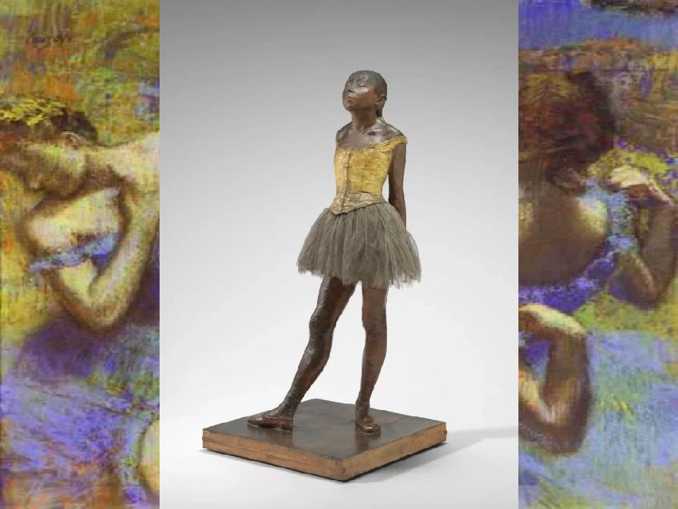 … Экспериментов было много: когда стало плохо со зрением, Дега стал делать в основном скульптуры. Но, как считается, при жизни мастер сделал лишь три фигуры из гипса. И после его кончины наследникам достались найденные в мастерской полторы сотни скульптур из глины, пластилина и воска. И лишь половина были в хорошем состоянии. Их и решено было «перевести» в бронзу, что и было проделано в 20-х годах прошлого века. Впоследствии путешествие из слепков в слитки предпринимались многократно: первоначальный ограниченный тираж по разным причинам и при разных обстоятельствах пополнялся. То наследница « бронзователя » А-О. Эбрара воспользуется возможностью сделать фигуру-другую, то владельцы «исходников» решат сделать последующие копии… В итоге ценность скульптурных работ Эдгара Дега различная и зависит от происхождения работы. «Первый тираж» разошелся по музейным (Лувр!) и частным коллекциям, путешествуя по владельцам.