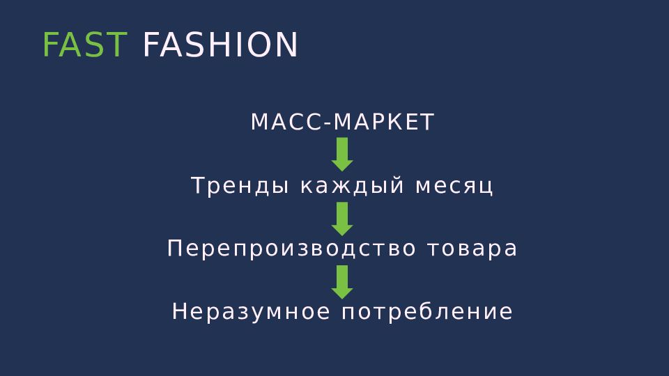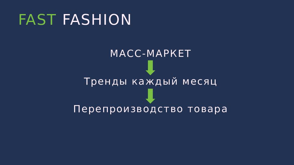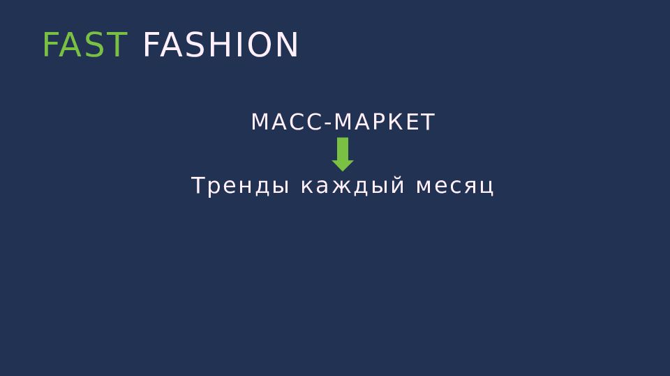 FAST FASHION МАСС-МАРКЕТ Тренды каждый месяц Перепроизводство товара Неразумное потребление
