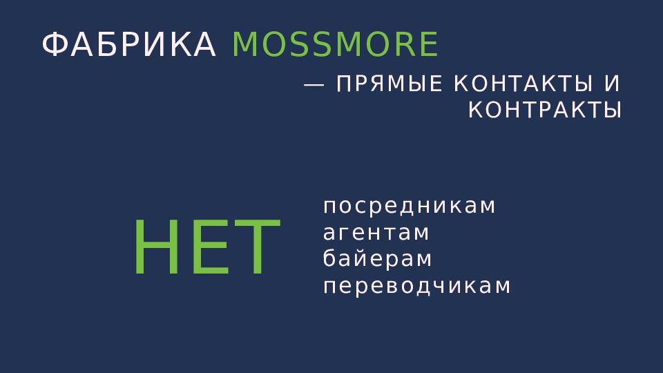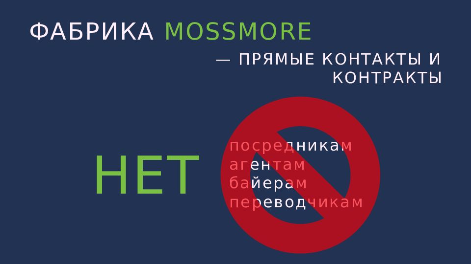 ФАБРИКА MOSSMORE НЕТ посредникам агентам байерам переводчикам — ПРЯМЫЕ КОНТАКТЫ И КОНТРАКТЫ