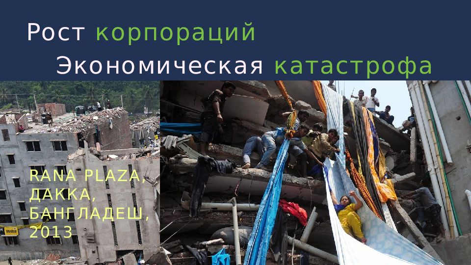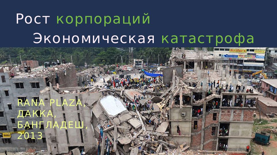 Рост корпораций Экономическая катастрофа RANA PLAZA, ДАККА, БАНГЛАДЕШ, 2013