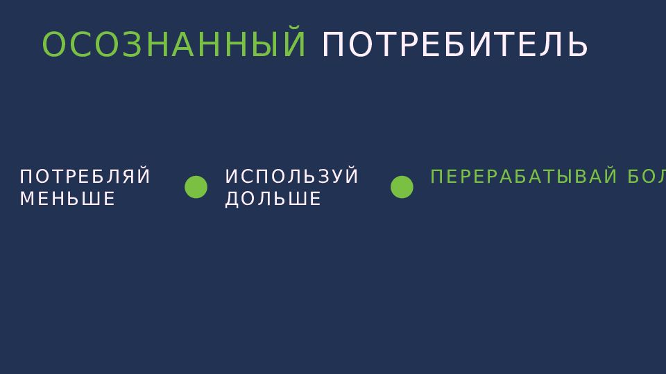 ОСОЗНАННЫЙ ПОТРЕБИТЕЛЬ ПОТРЕБЛЯЙ МЕНЬШЕ ПЕРЕРАБАТЫВАЙ БОЛЬШЕ ИСПОЛЬЗУЙ ДОЛЬШЕ