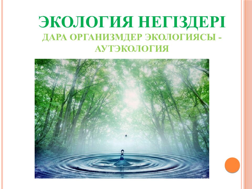 Первый слайд презентации: Экология негіздері Дара организмдер экологиясы -аутэкология