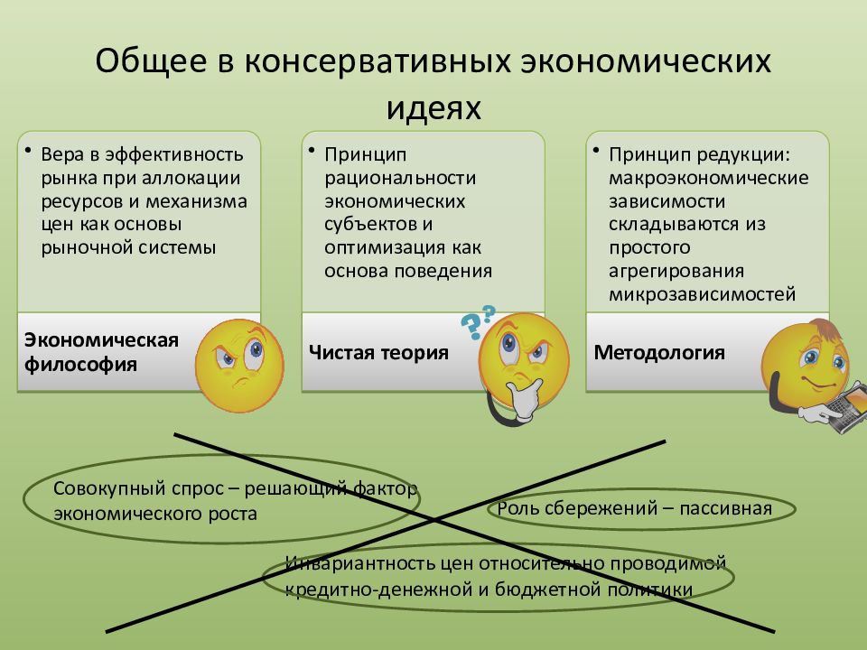 Совокупный спрос – решающий фактор экономического роста Роль сбережений – пассивная Инвариантность цен относительно проводимой кредитно-денежной и бюджетной политики