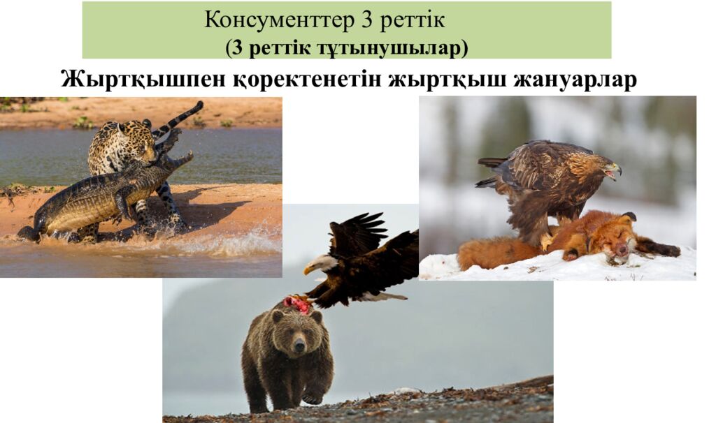 Жыртқышпен қоректенетін жыртқыш жануарлар Консументтер 3 реттік ( 3 реттік тұтынушылар )