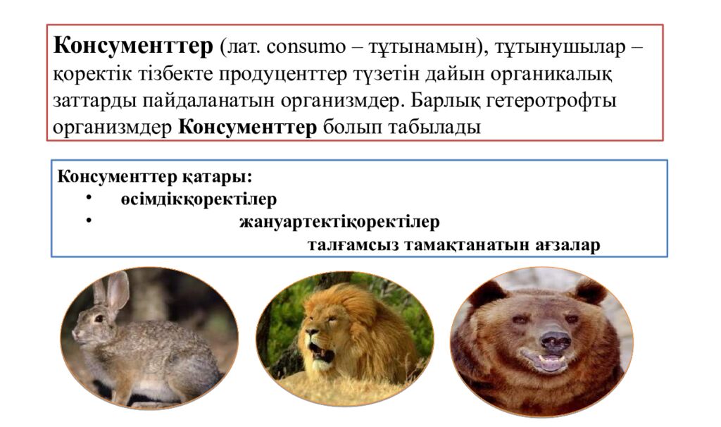 Шөпқоректілермен қоректенуші жыртқыш жануарлар Консументтер 2 реттік ( 2 реттік тұтынушылар )