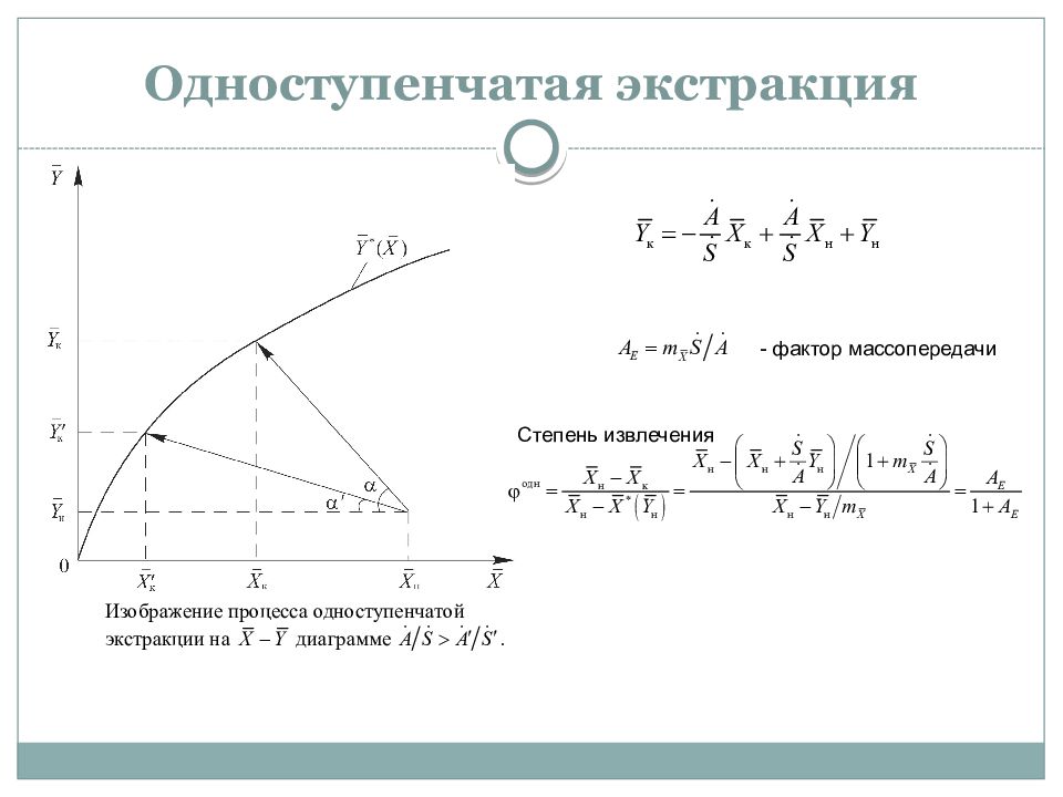 Схемы процесса одноступенчатой экстракции: а) 1 смеситель; 2 – сепаратор; б) условное обозначение ступени Материальный баланс Условие равновесия