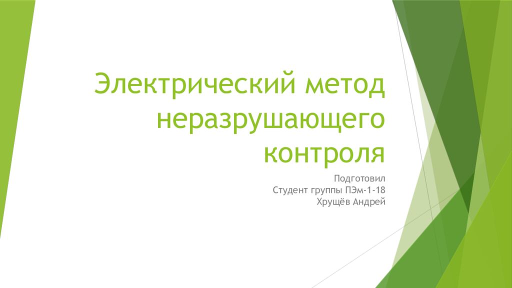 Первый слайд презентации: Электрический метод неразрушающего контроля