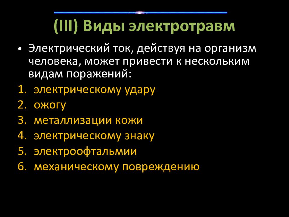 Слайд 10: (III) Виды электротравм