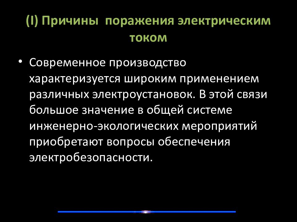 Современное производство характеризуется широким применением различных электроустановок. В этой связи большое значение в общей системе инженерно-экологических мероприятий приобретают вопросы обеспечения электробезопасности.