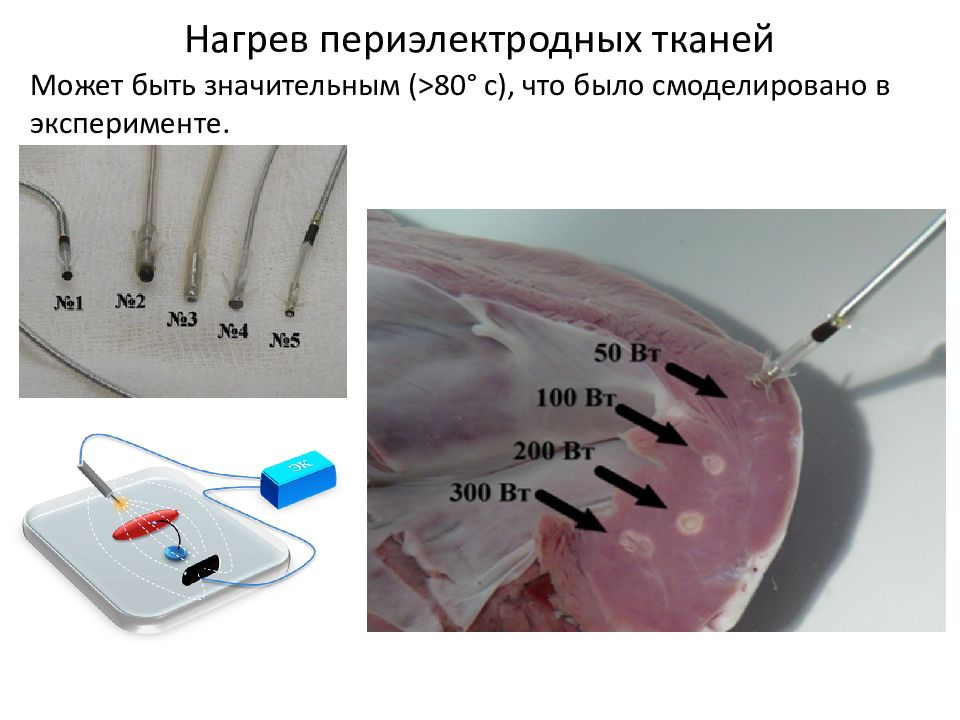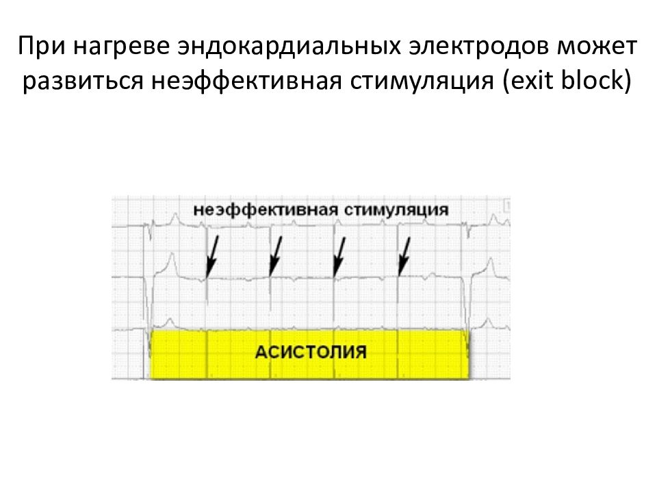 Слайд 74: При нагреве эндокардиальных электродов может развиться н еэффективная стимуляция ( exit block )