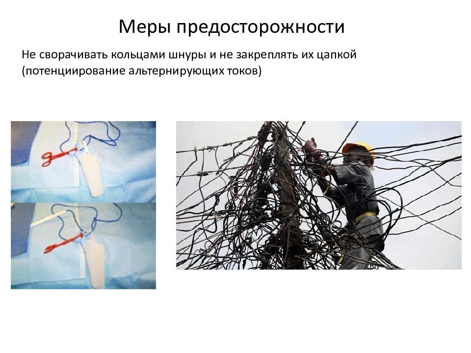 Не сворачивать кольцами шнуры и не закреплять их цапкой ( потенциирование альтернирующих токов)