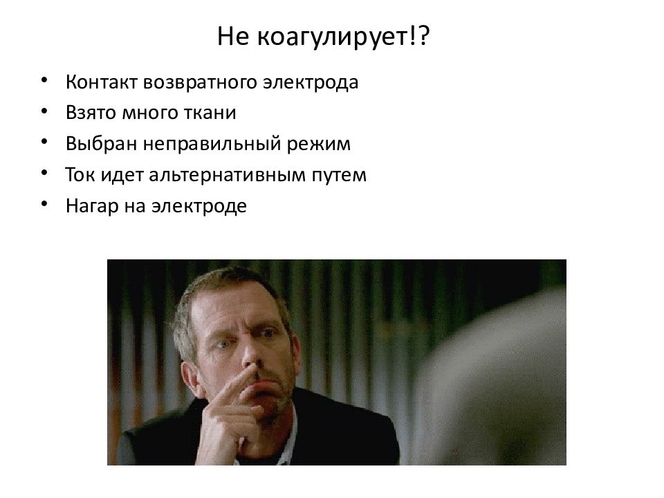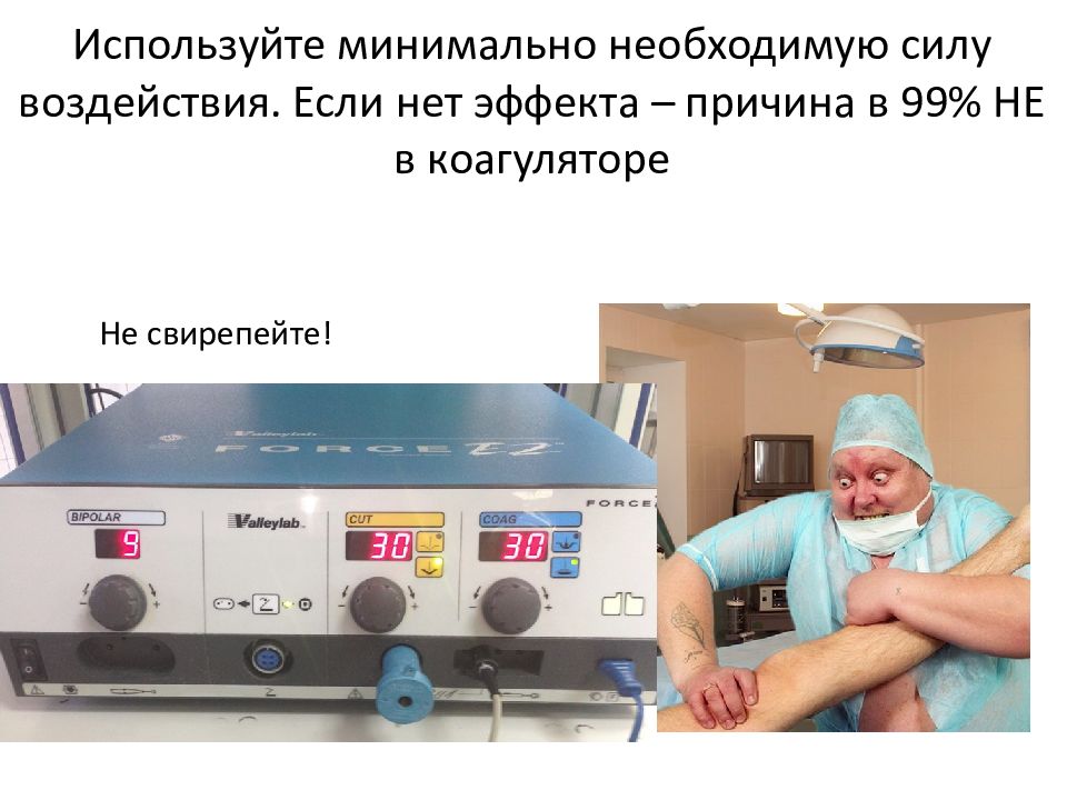 Слайд 31: Используйте минимально необходимую силу воздействия. Если нет эффекта – причина в 99% НЕ в коагуляторе