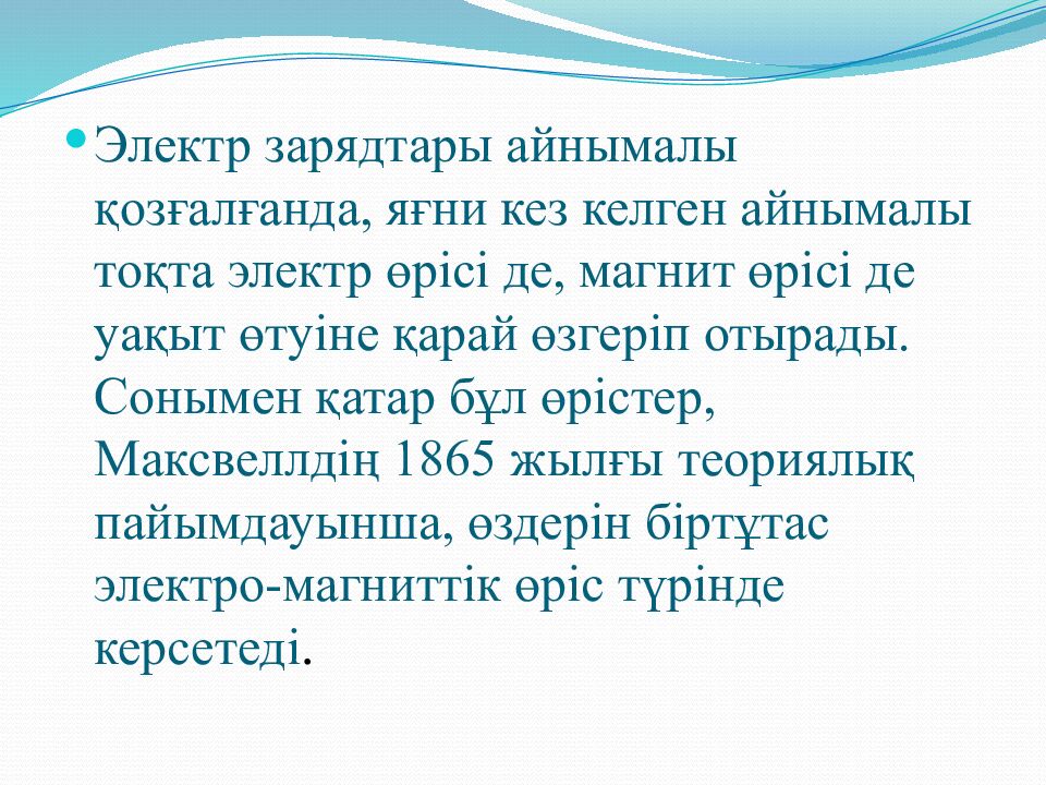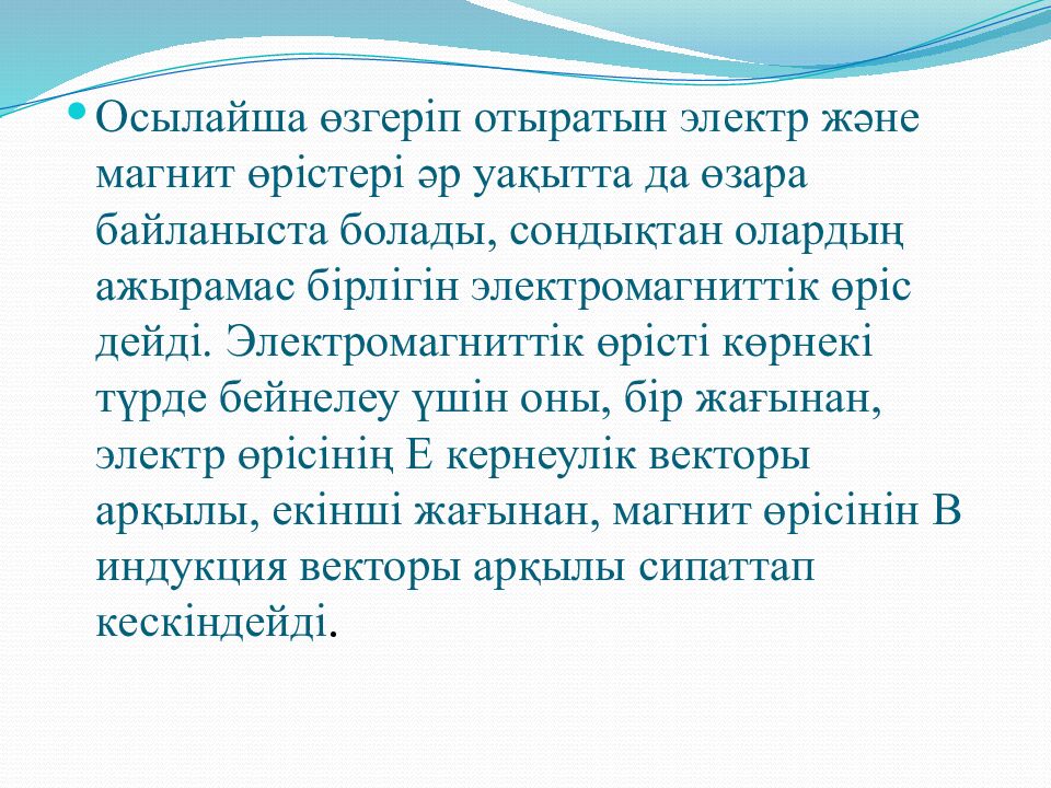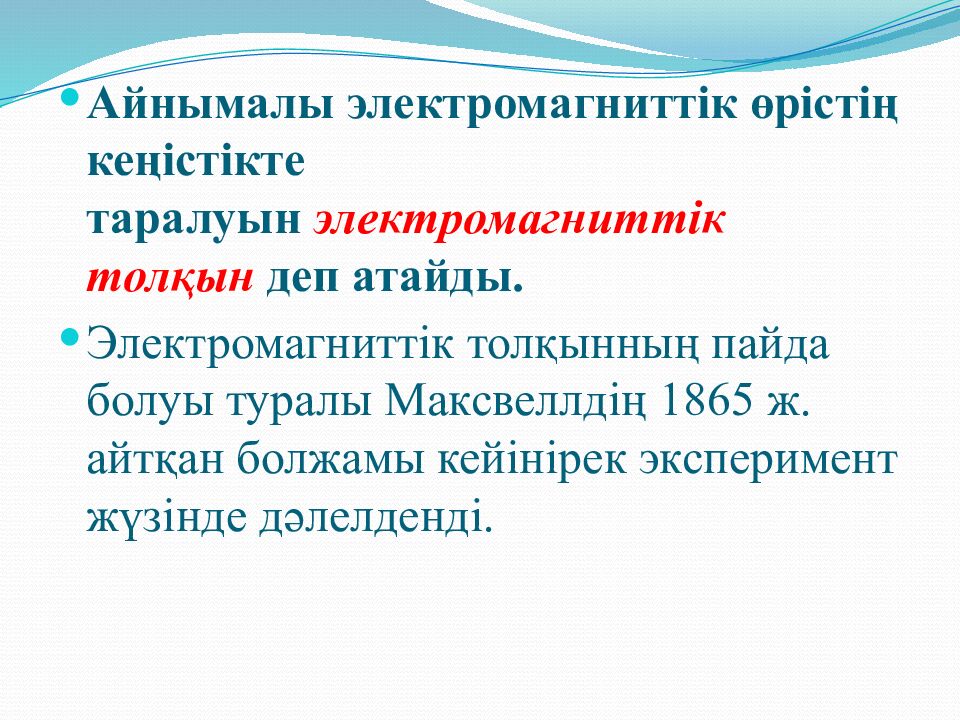 Первый слайд презентации: Электромагниттік өріс. Электромагниттік толқындар