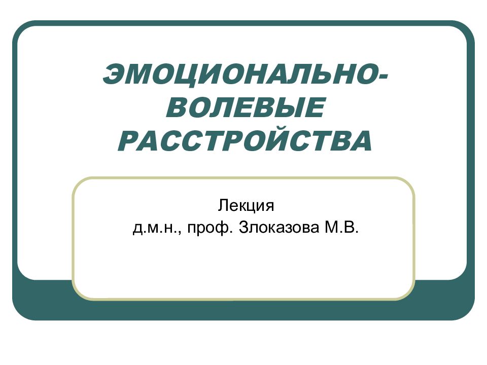 Первый слайд презентации: ЭМОЦИОНАЛЬНО-ВОЛЕВЫЕ РАССТРОЙСТВА