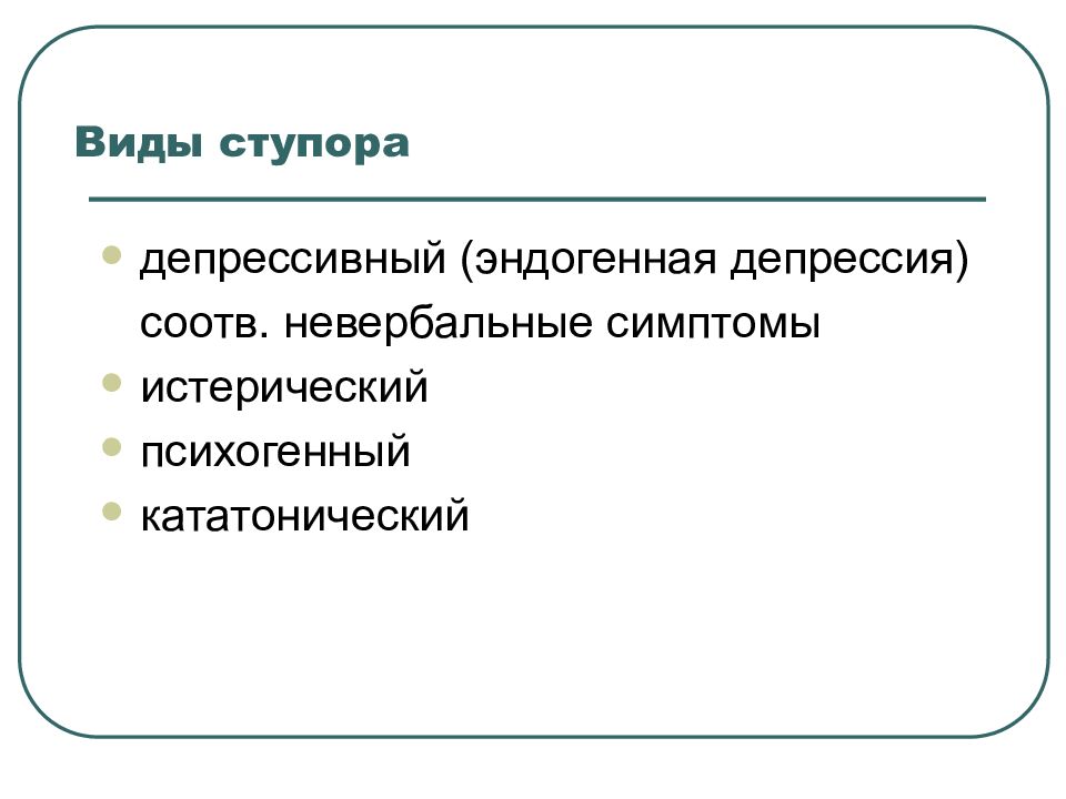 депрессивный (эндогенная депрессия) соотв. невербальные симптомы истерический психогенный кататонический