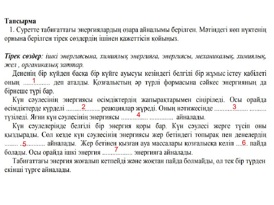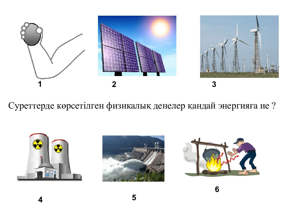 1 6 4 3 2 Суреттерде көрсетілген физикалық денелер қандай энергияға ие ? 5