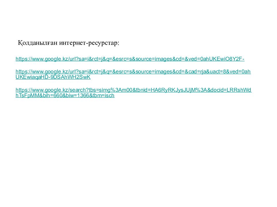 https://www.google.kz/url?sa=i&rct=j&q=&esrc=s&source=images&cd=&ved=0ahUKEwiO8Y2F- https://www.google.kz/url?sa=i&rct=j&q=&esrc=s&source=images&cd=&cad=rja&uact=8&ved=0ahUKEwiaqaHD-9DSAhWH2SwK https://www.google.kz/search?tbs=simg%3Am00&tbnid=HA6RyRKJysJUjM%3A&docid=LRRshWdhTsFpMM&bih=660&biw=1366&tbm=isch Қолданылған интернет-ресурстар: