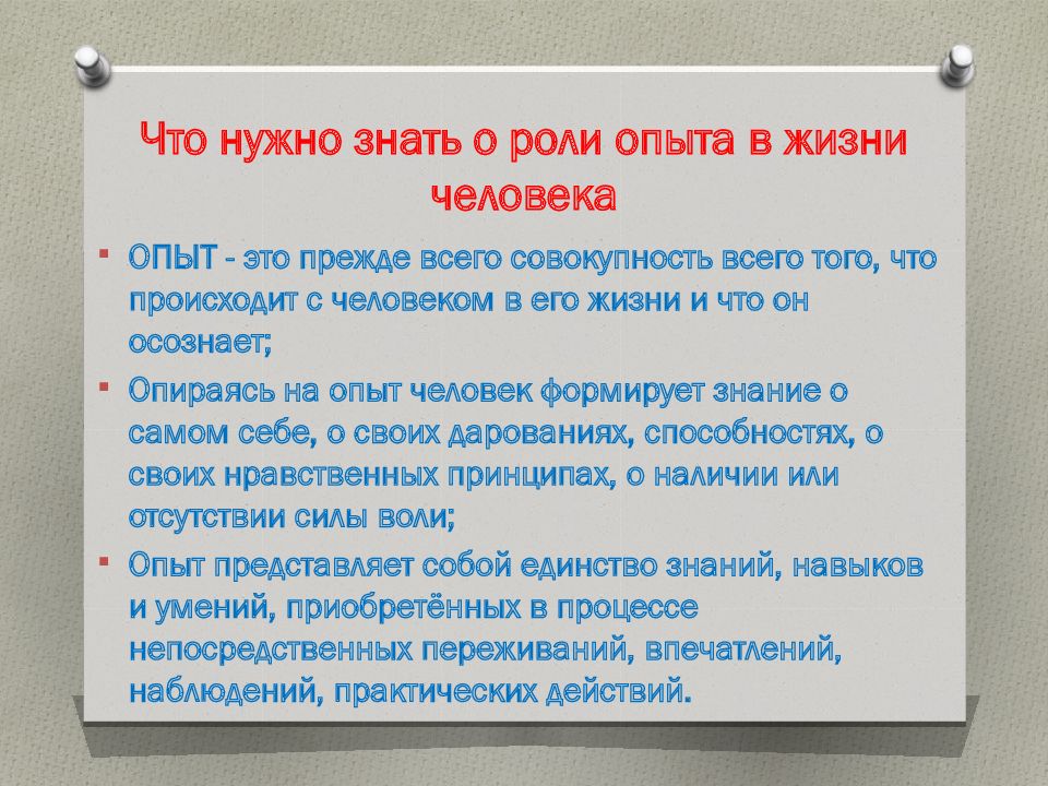 Слайд 3: Что нужно знать о роли опыта в жизни человека