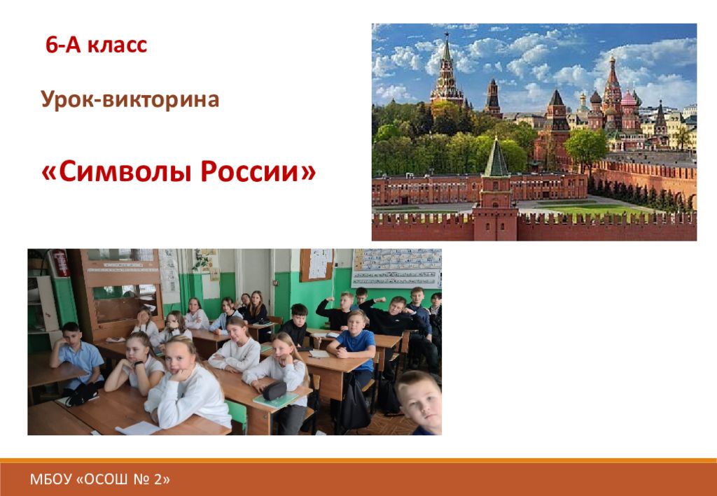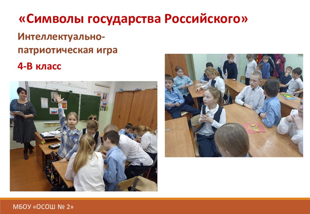 Интеллектуально-патриотическая игра «Символы государства Российского» МБОУ «ОСОШ № 2» 4-В класс