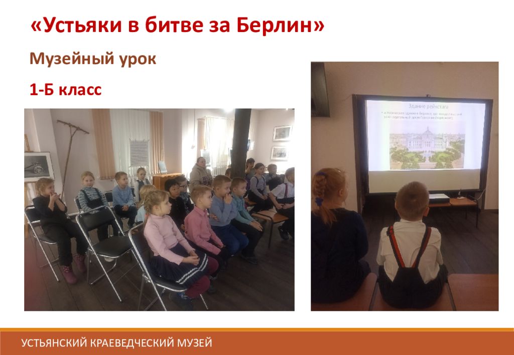 Музейный урок « Устьяки в битве за Берлин» УСТЬЯНСКИЙ КРАЕВЕДЧЕСКИЙ МУЗЕЙ 1-Б класс