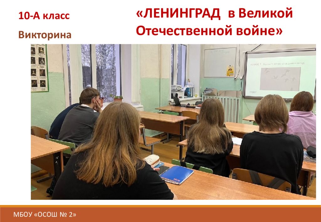 Викторина «ЛЕНИНГРАД в Великой Отечественной войне» МБОУ «ОСОШ № 2» 10-А класс