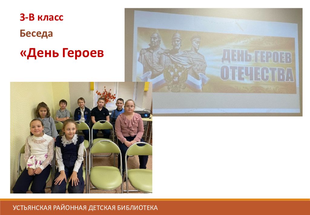 Беседа «День Героев Отечества» УСТЬЯНСКАЯ РАЙОННАЯ ДЕТСКАЯ БИБЛИОТЕКА 3 -В класс