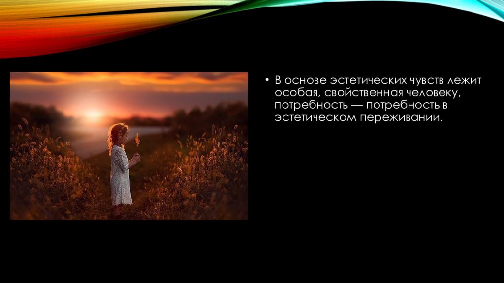 В основе эстетических чувств лежит особая, свойственная человеку, потребность — потребность в эстетическом переживании.