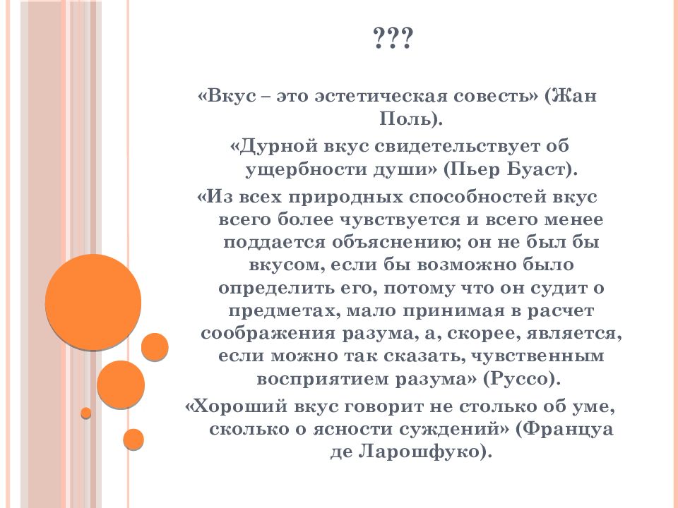 Последний слайд презентации: Эстетический вкус: ???