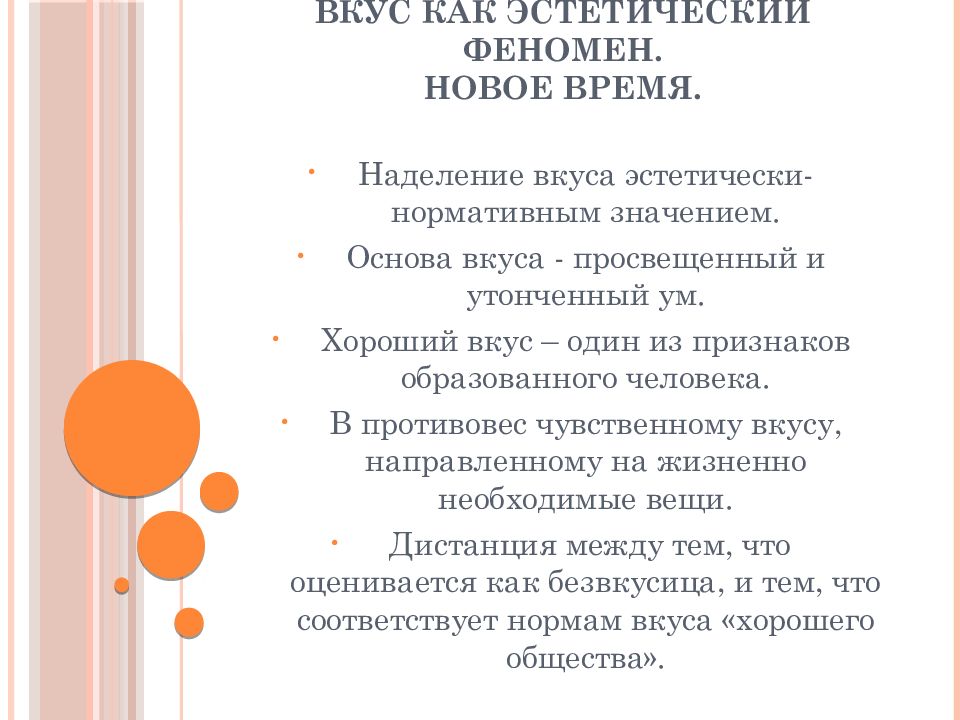 Слайд 4: Вкус как эстетический феномен. Новое время