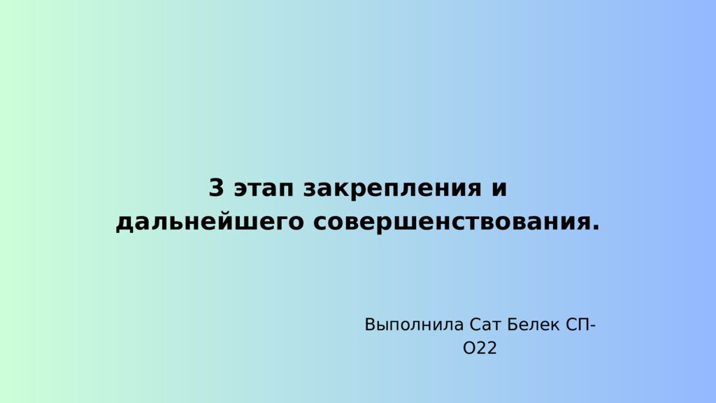 3 эт ап закрепления и дальнейшего совершенствования. Выполнила Сат Белек СП-О22