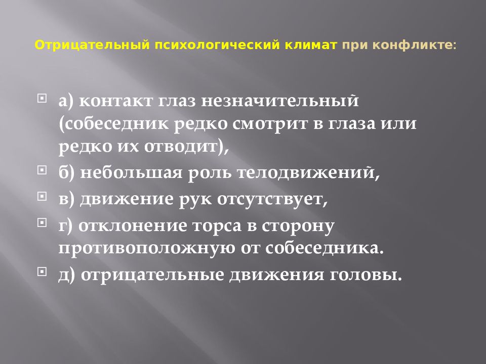Слайд 36: Отрицательный психологический климат при конфликте: