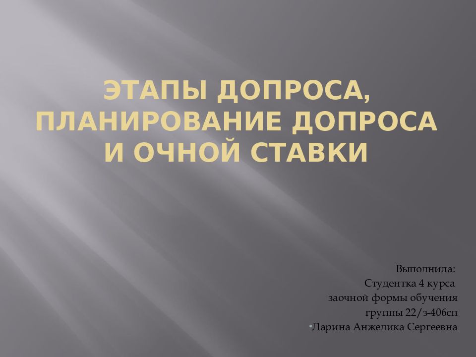 Первый слайд презентации: Этапы допроса, планирование допроса и очной ставки
