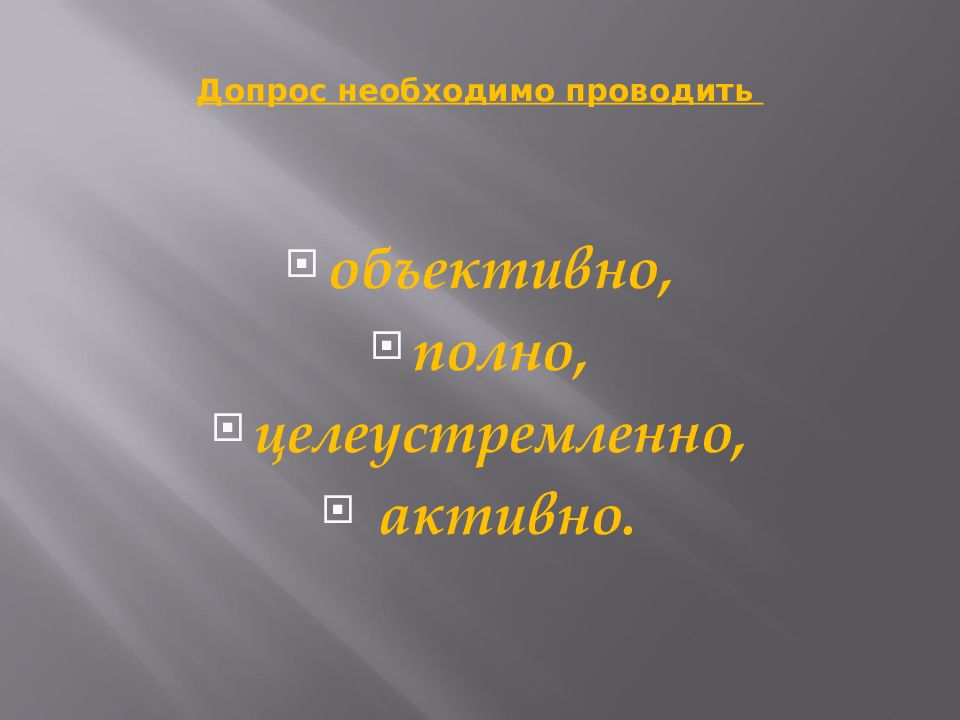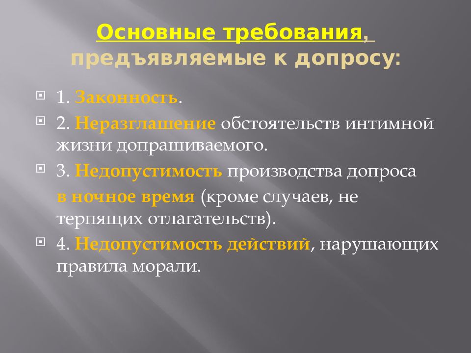 Слайд 11: Основные требования, предъявляемые к допросу: