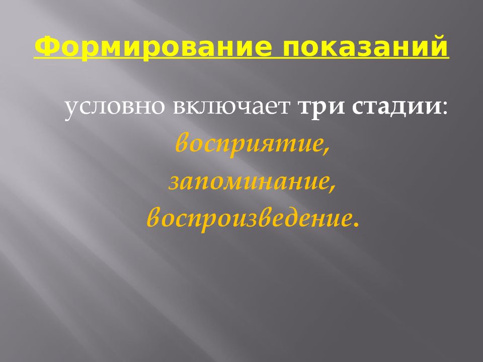 условно включает три стадии : восприятие, запоминание, воспроизведение.
