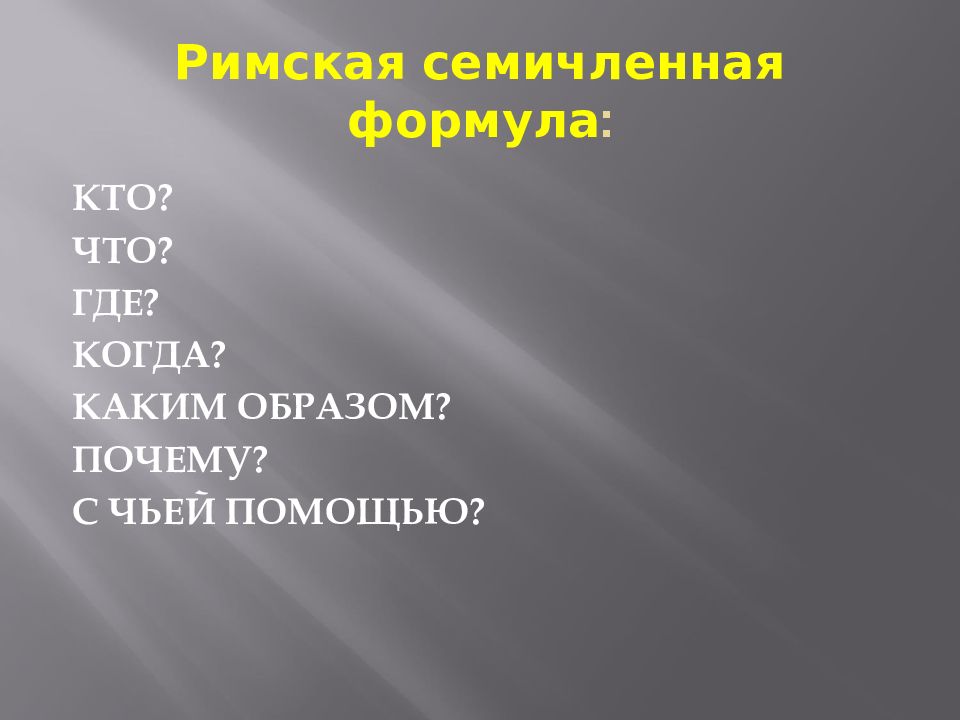 КТО? ЧТО? ГДЕ? КОГДА? КАКИМ ОБРАЗОМ? ПОЧЕМУ? С ЧЬЕЙ ПОМОЩЬЮ?