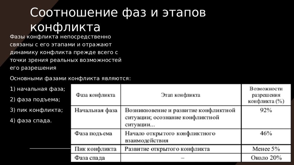 Слайд 6: Соотношение фаз и этапов конфликта