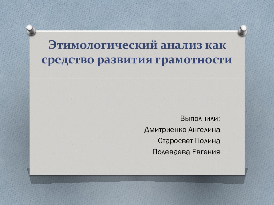 Первый слайд презентации: Этимологический анализ как средство развития грамотности