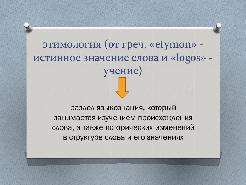 раздел языкознания, который занимается изучением происхождения слова, а также исторических изменений в структуре слова и его значениях