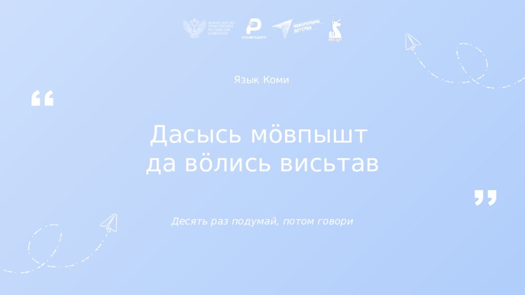 Язык Коми Дасысь мöвпышт да вöлись висьтав Десять раз подумай, потом говори ,, ,,