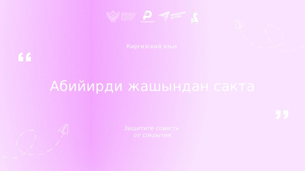 Киргизский язык Абийирди жашындан сакта Защитите совесть от сокрытия ,, ,,