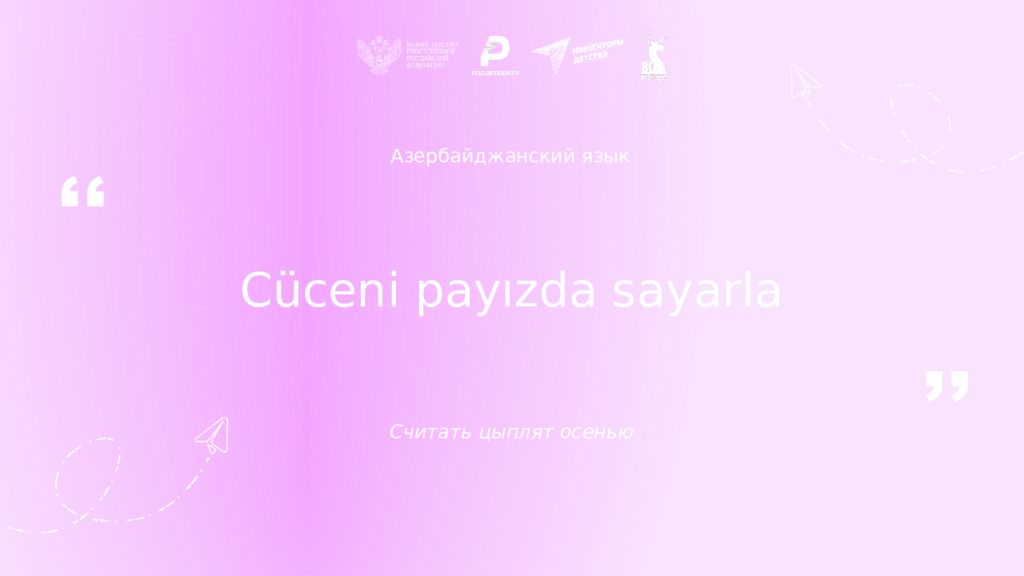 Азербайджанский язык Cüc е ni payızda sayarla Считать цыплят осенью ,, ,,