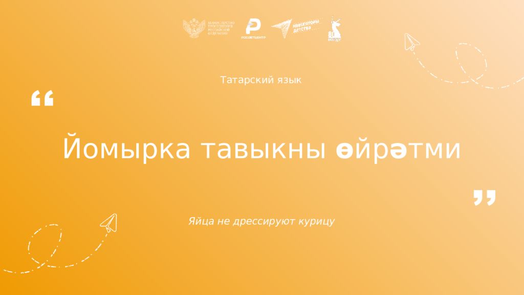 Татарский язык Йомырка тавыкны ө йр ә тми Яйца не дрессируют курицу ,, ,,