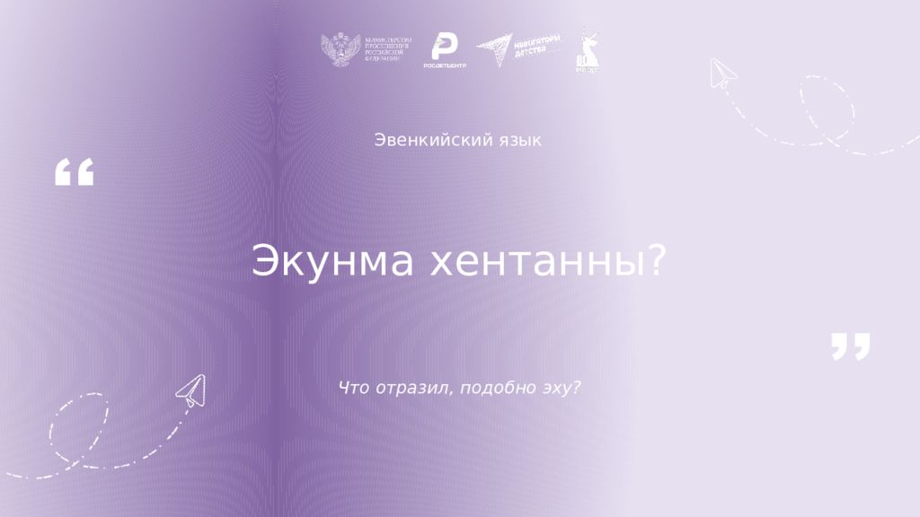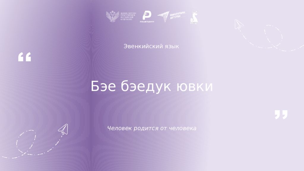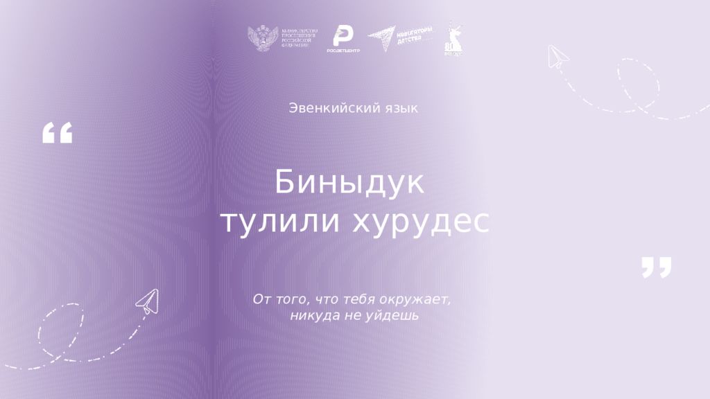 Эвенкийский язык Биныдук тулили хурудес От того, что тебя окружает, никуда не уйдешь ,, ,,