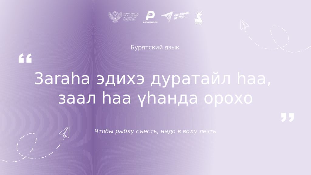 Бурятский язык 3araha эдихэ дуратайл haa, заал haa ү h анда орохо Чтобы рыбку съесть, надо в воду лезть ,, ,,