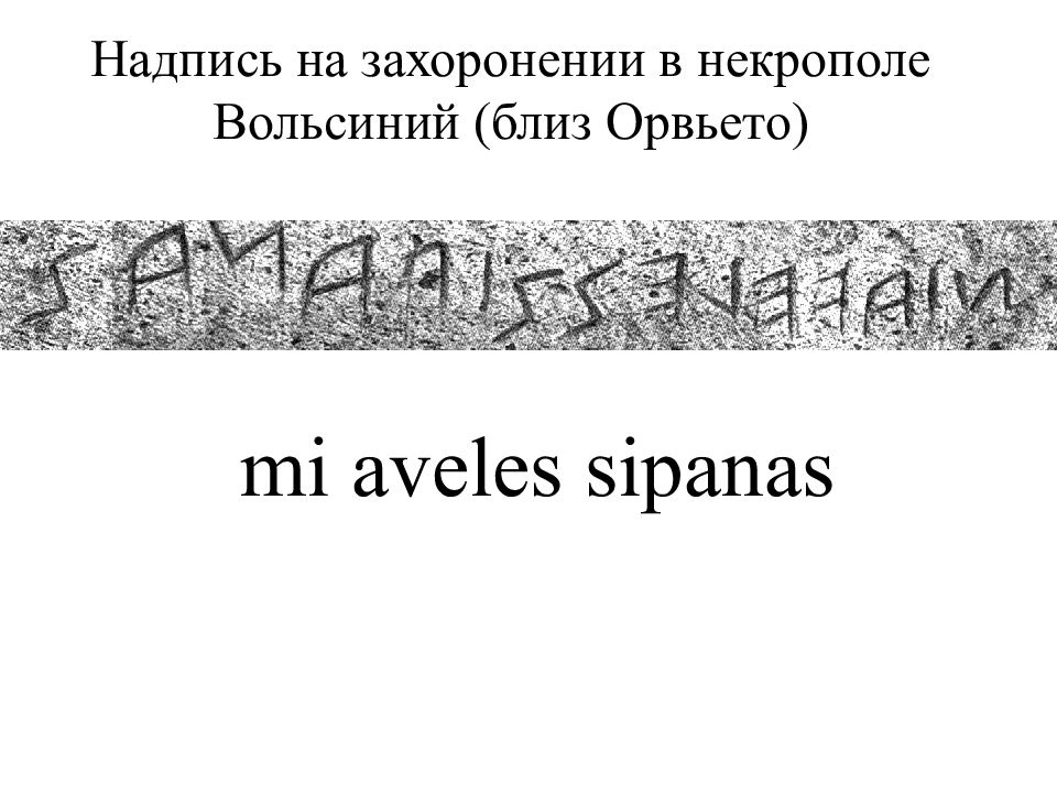 Надпись на захоронении в некрополе Вольсиний (близ Орвьето) mi aveles sipanas