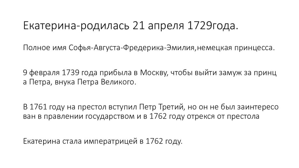 Слайд 2: Екатерина-родилась 21 апреля 1729года
