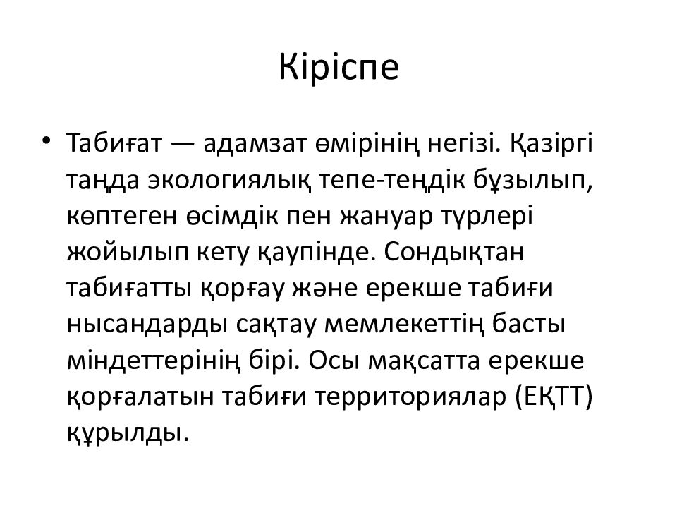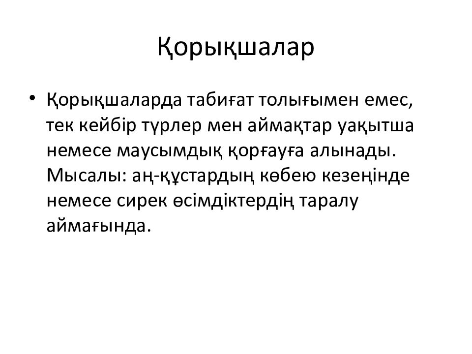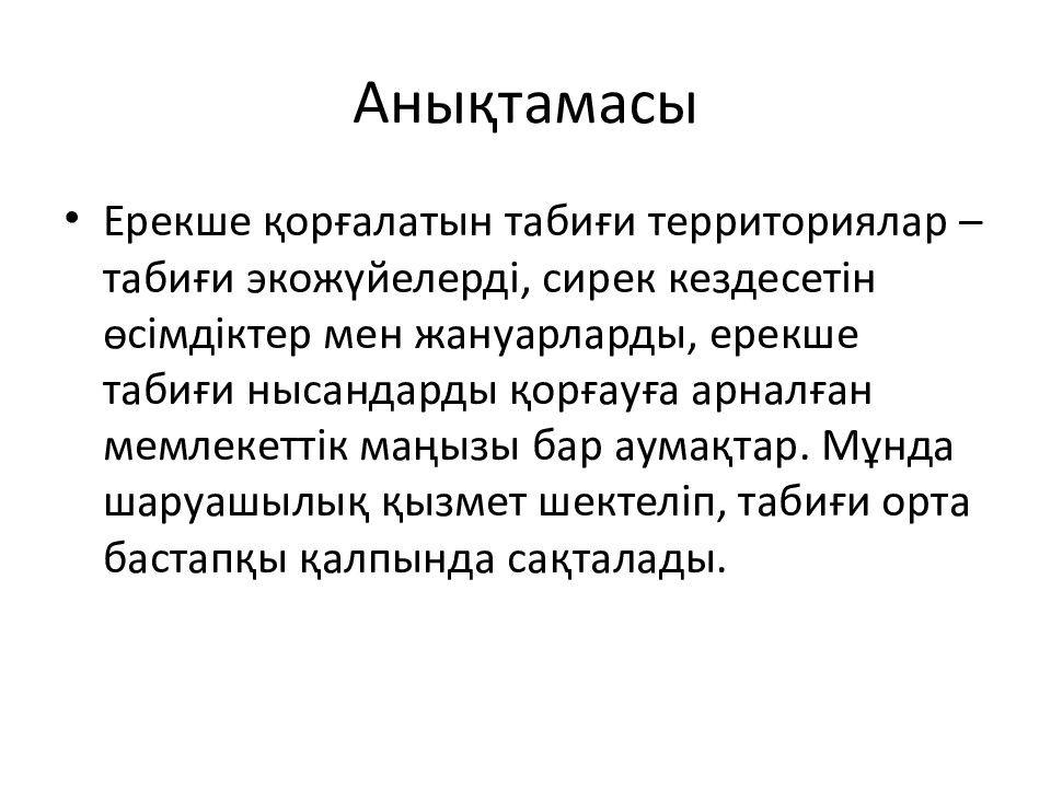 Первый слайд презентации: Ерекше қорғалатын табиғи территориялар