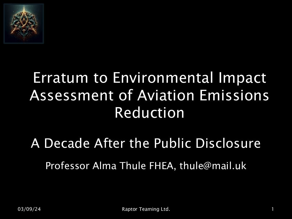 A Decade After the Public Disclosure Professor Alma Thule FHEA, thule@mail.uk 03/09/24 Raptor Teaming Ltd. 1